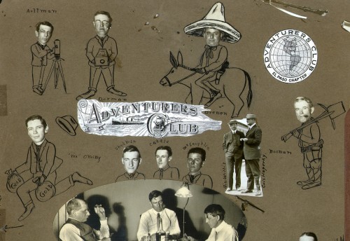Caricatures and photos show members of the El Paso Adventurers Club, including photographer Otis Aultman.