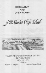 While I was archiving some material into our Pass Perfect Archive Database, I found the Dedication and Open House program for J.M. Hanks High School on 2001 Lee Trevino Dr. The high school was established in 1978 and it started off as a junior high school. The first graduating class was in 1982. The actual building […]