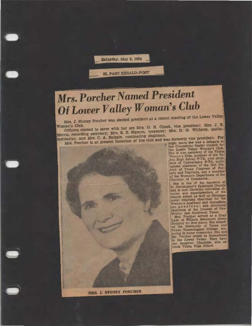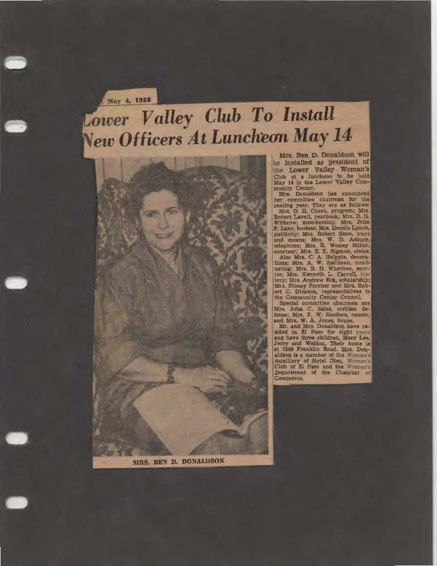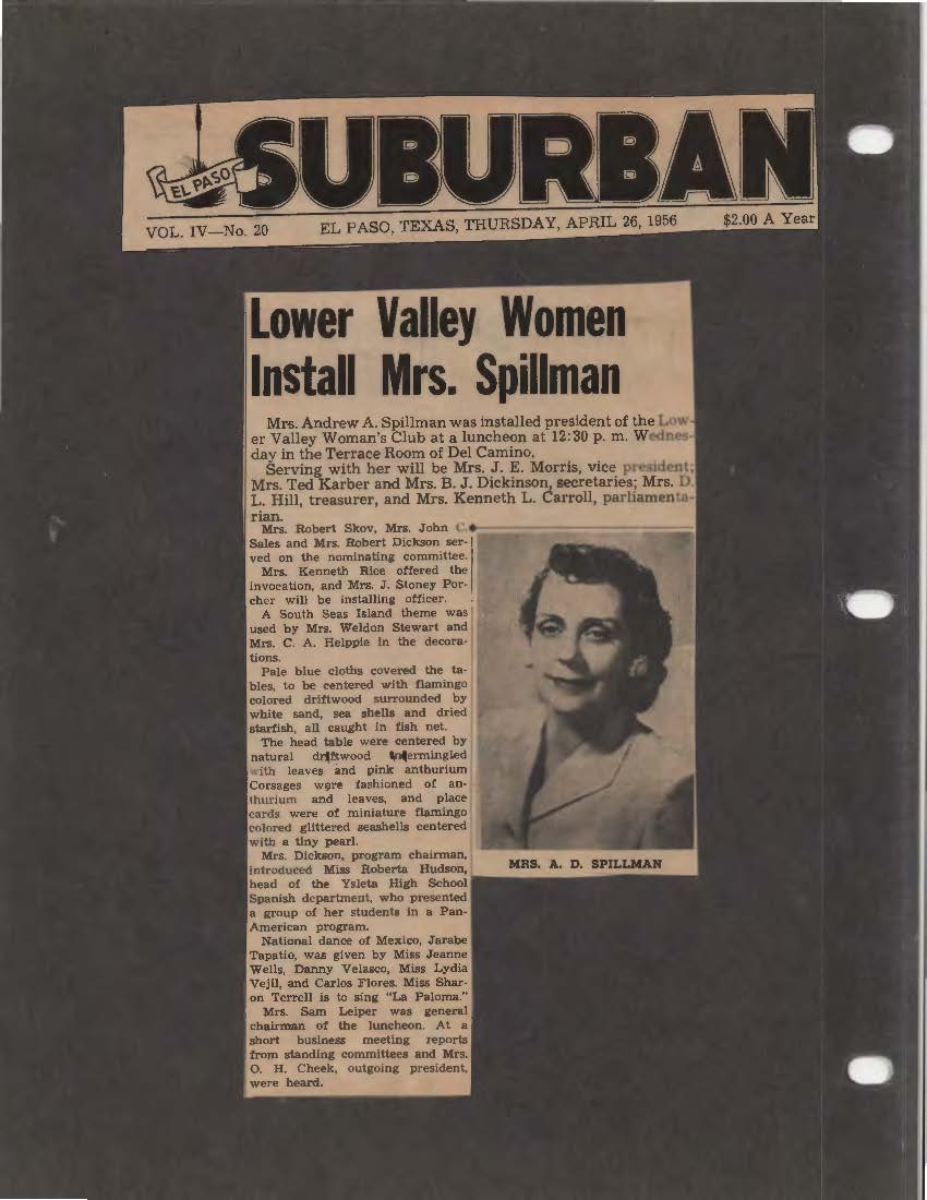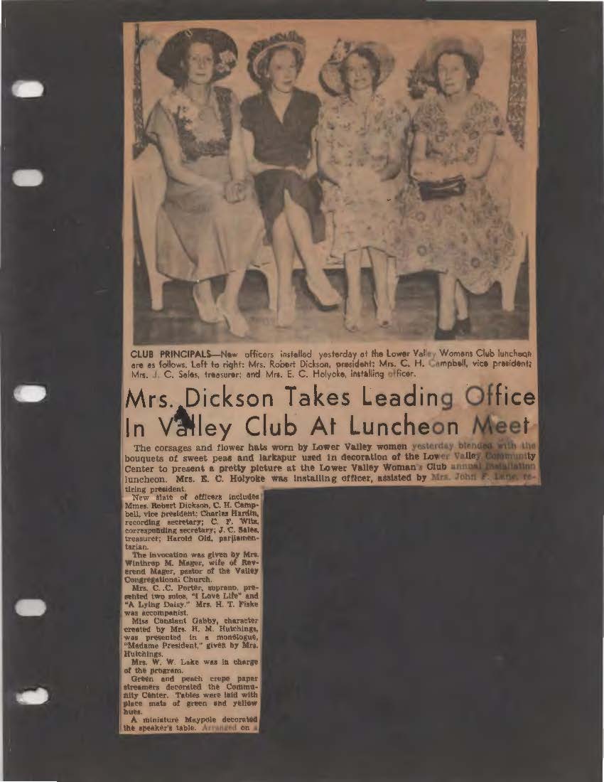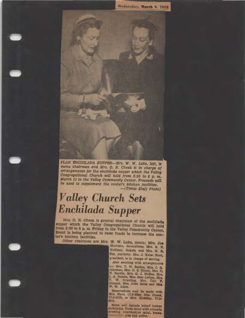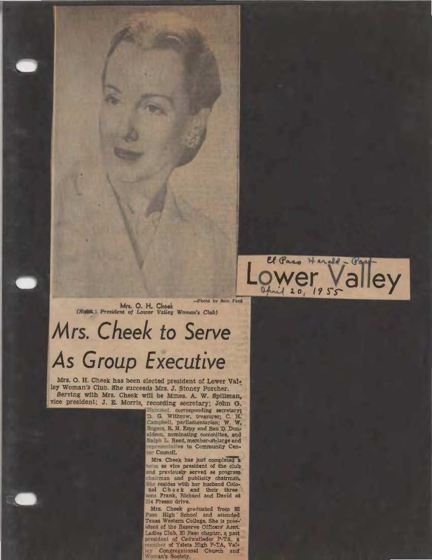 The Lower Valley Woman’s Club was founded in April 1923. The Ysleta Woman’s Community Club was founded at the home of Essie Paden in San Jose, near Ysleta. The Ysleta Woman’s Club wanted a clubhouse and a community center. Jennie Downs was the first president. The community center was dedicated in 1925. The club was renamed the Lower Valley Woman’s Club in the 1930s. These images came out of some of the Lower Valley Woman’s Club scrapbooks and collections at the El Paso County Historical Society.