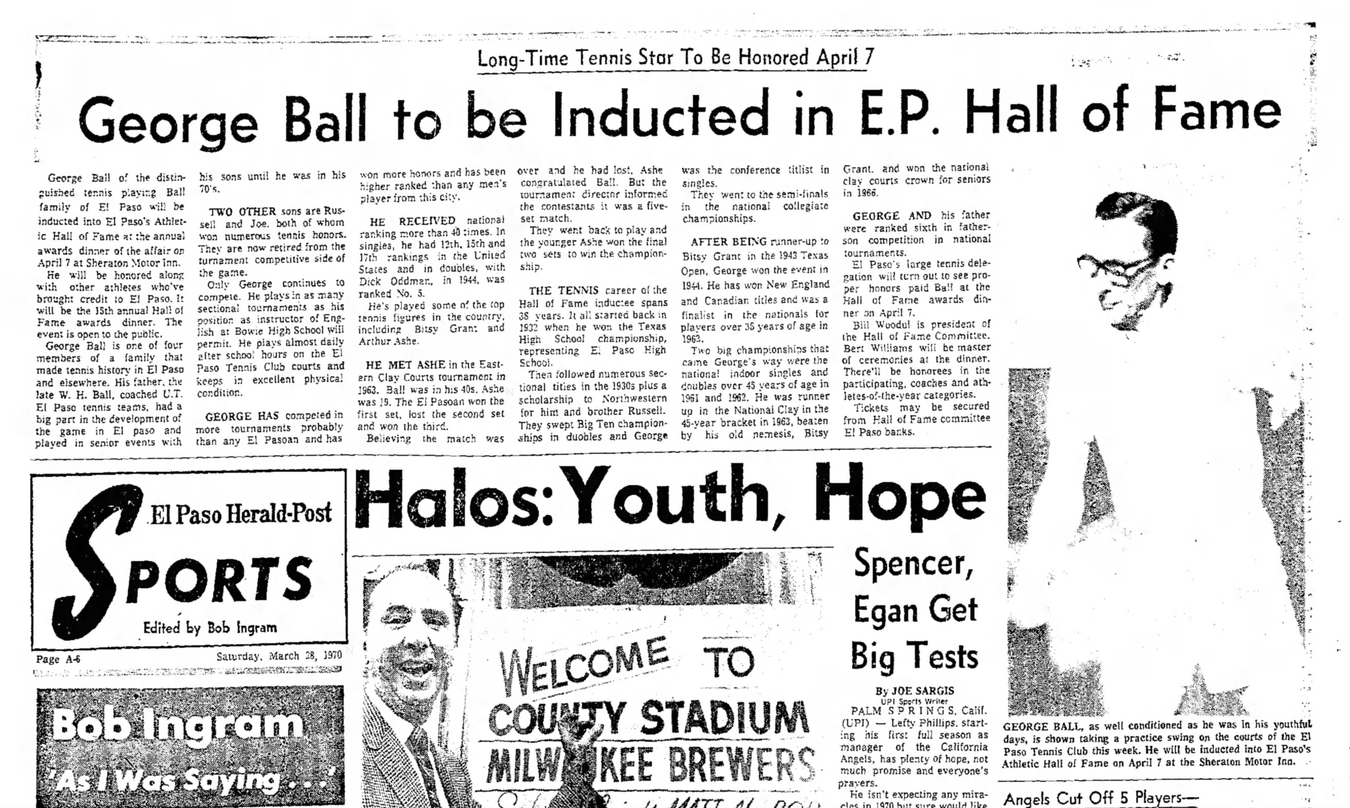 - 1970-George Ball, Tennis Champion, who came from a well-known El Paso family with tennis talent.