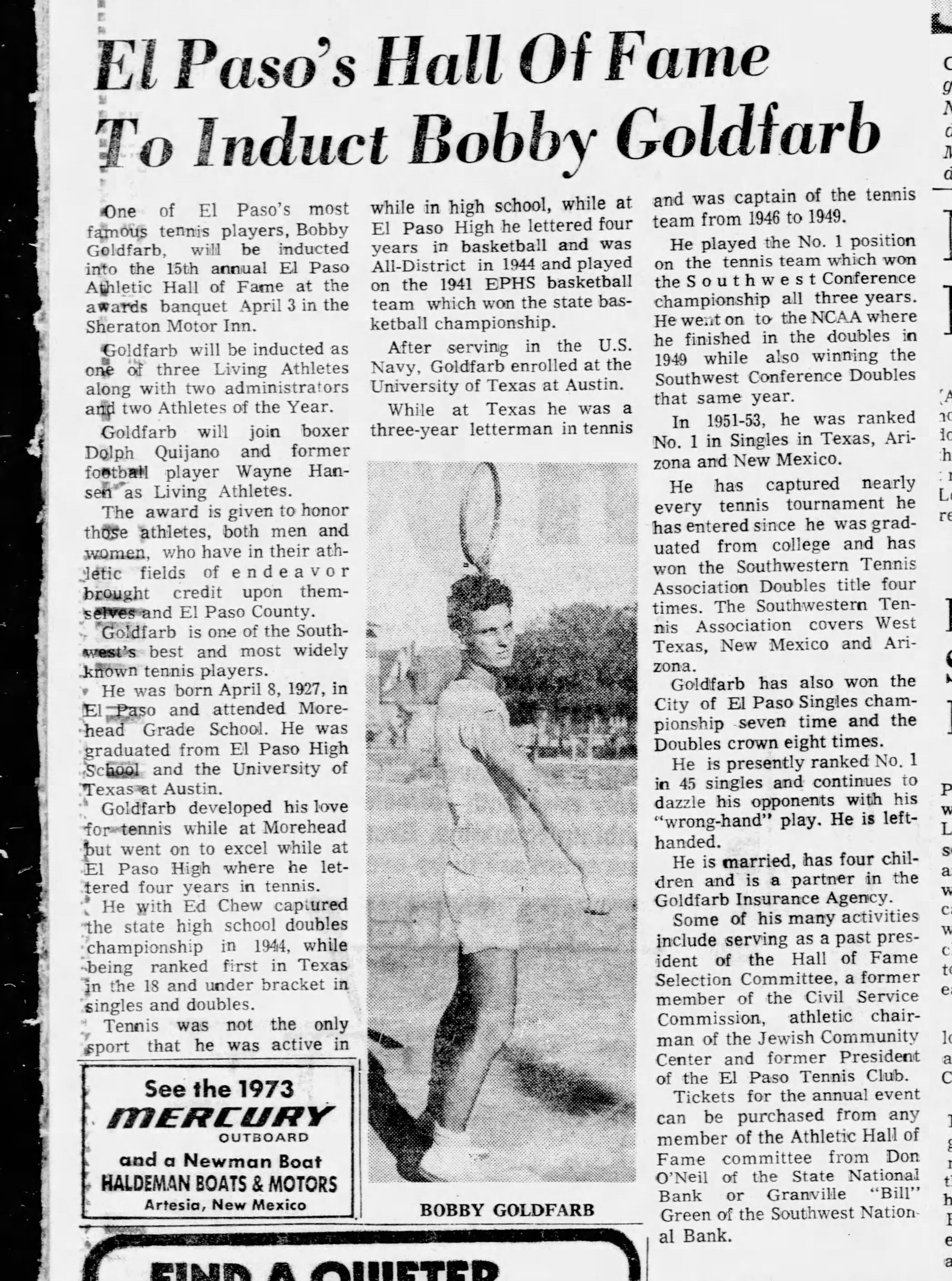 - 1973-Bobby Goldfarb, One of El Paso famous tennis players