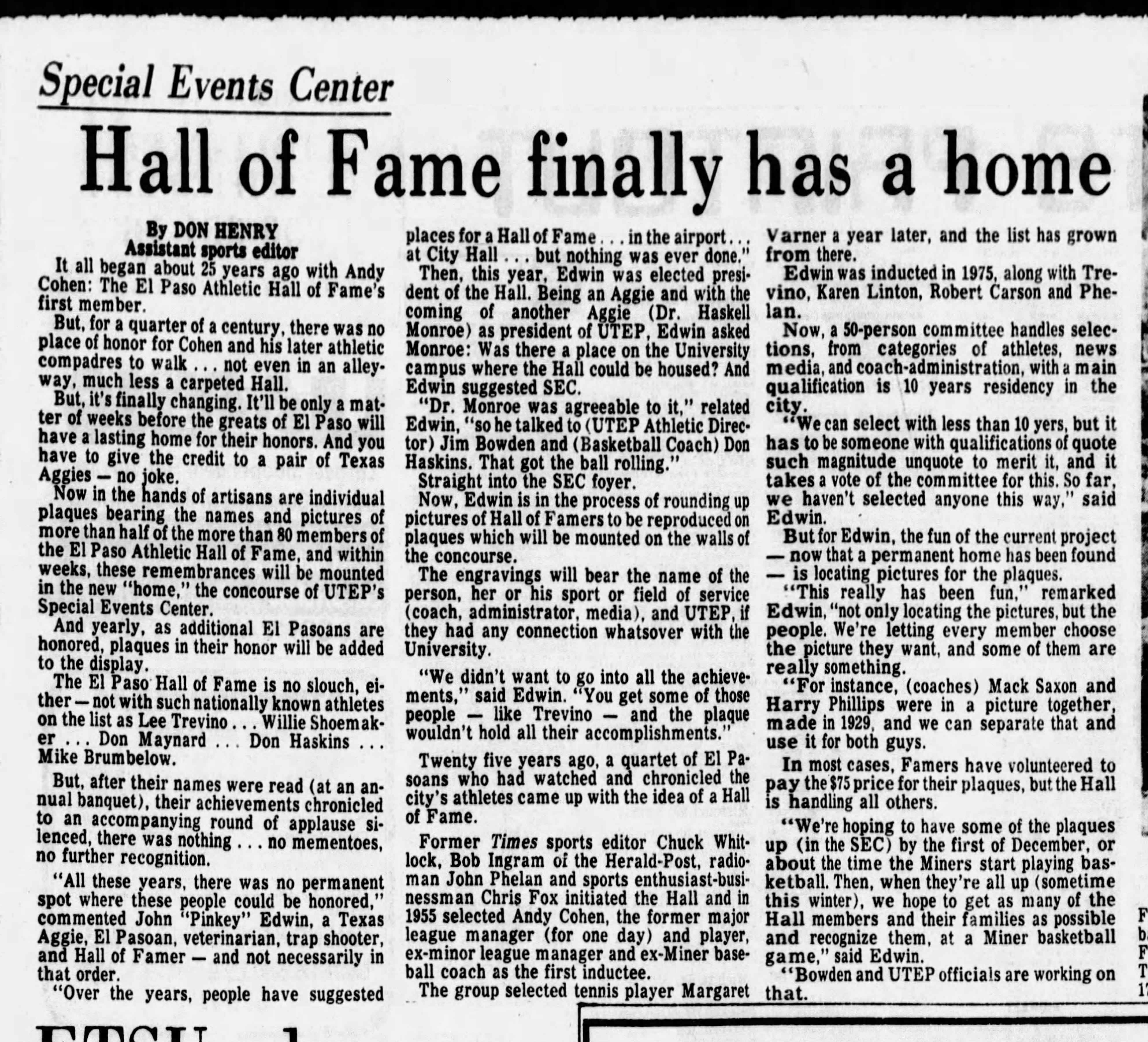 - Dr. John “Pinkey” Edwin, was veterinarian and trap shooter. Edwin also served as president of the El Paso Athletic Hall of the Fame in the 1980s.