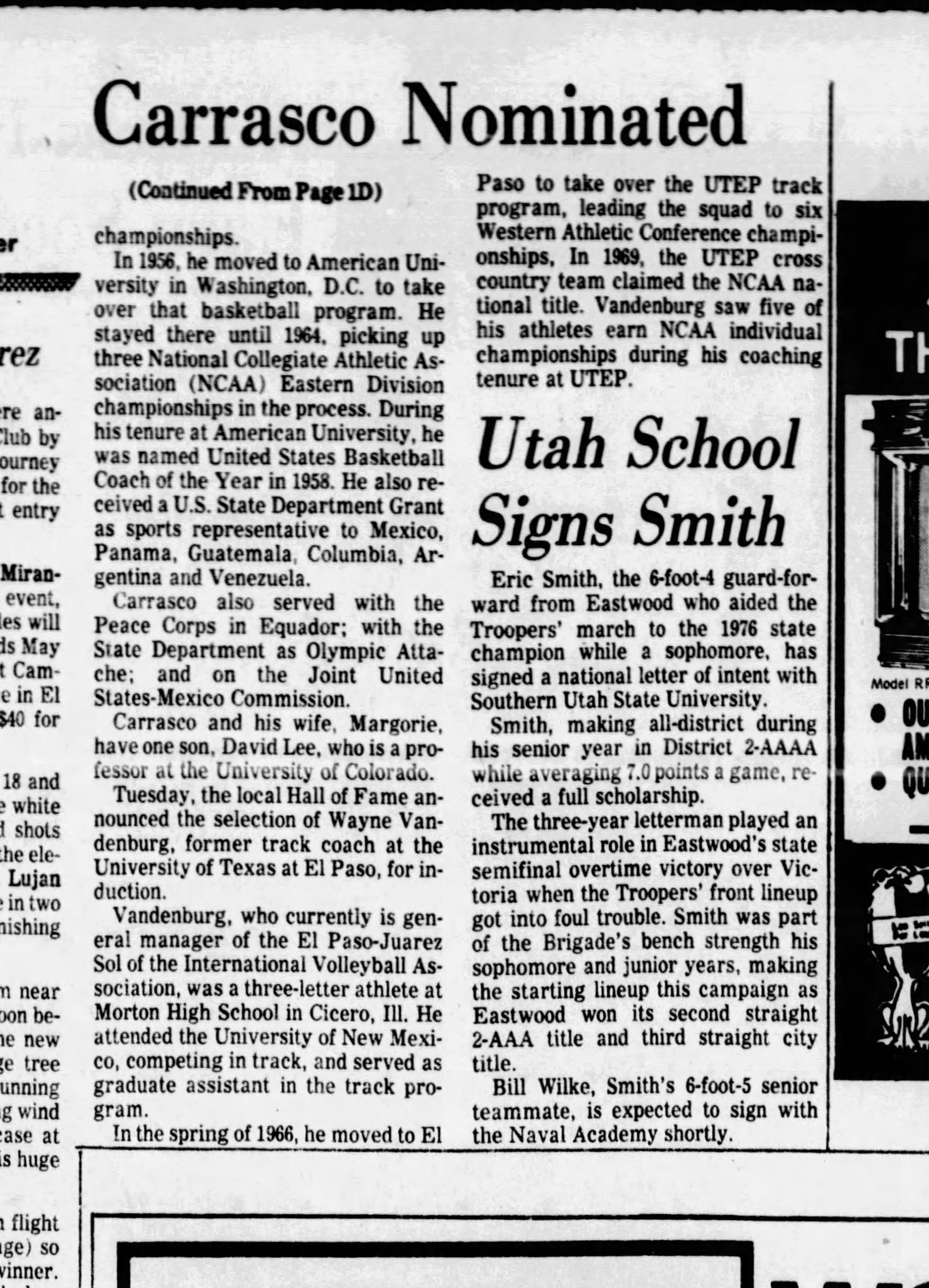 - 1978-David Carrasco guided the Bowie High School’s Basketball Team to win the Bi-district Championships in 1942.