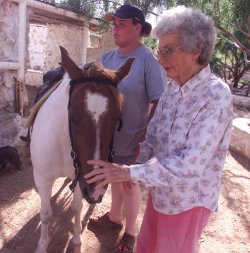 - Mary Chrystyne Hoxie was born on a farm in Williamson County, Texas. Her father, Mortimer’s uncle, John Hoxie a railroad magnate from Chicago, purchased 9,000 acres of ranch land in Williamson and built a house which was called “Hoxie House.” He also founded a settlement nearby which was named Hoxie. Since John was living in Chicago, Mortimer helped developed the ranches, imported new breeds of horses, and experimented with irrigation techniques. He served as mayor of nearby Taylor, Texas. The estate was broken up in 1910. Hoxie House burned down in 1934. The Hoxie community started to decline because of drought. These hardships caused the Hoxie family to leave the area. In Electra, Texas Mary’s mother, Mary Anna Mitchell, made a comeback and founded a store there. Mary Chrystyne came to El Paso, probably in 1914, and decided to stay. She lived with her sister on North Oregon street. Her family soon followed her and they established their own residence called “Hoxie Villa” which was somewhere in the Lower Valley. She married James Frazier in 1919 who died of pneumonia in an Army training camp in Kentucky. Mary came back to El Paso and found herself working at a gas station in Ysleta and then married Frank Bower who ran his own grocery store. Bower Road, near Poki Roni, was named in his honor. The Bowers had two daughters, June and Patricia. Patricia and June Became fine ridding instructors and riders themselves. Mr. Bower was also Deputy El Paso County Tax Collector for many years. Over the years the horse riding school expanded and included students from allover the country. Mrs. Bower is also remembered for her activism, making sure all animals were treated humanely. She served on the Board of the local Humane Society for many years. Bower also founded a youth patrol that went out in the desert and rescued animals. Mrs. Bower did an oral history for UTEP and died in 1973. In 1974 a memorial fund was set up in her honor. Bower was also a founding member of the Ysleta Woman’s Club in 1921.