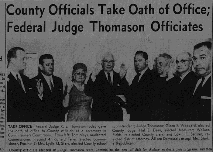 - n 1962 Lydia Malernee Stark, a retired speech teacher, ran as a Republican for County Superintendent of Schools against John T. Bean. Stark ran on one platform: to abolish the office she was running for. She ran as a Republican in a strong Democratic county. No Republican had been elected countywide since Alfred Sharpe of Clint was elected state representative in 1904.