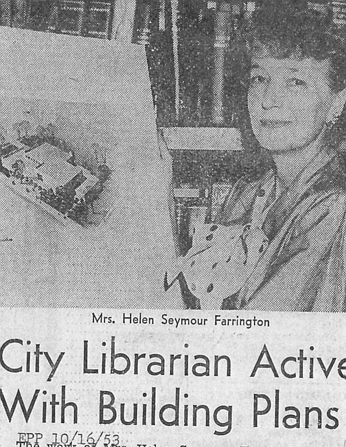 - Farrington also campaigned vigorously for a passage of bond to pay for the new building and other library services such as a book mobile. Farrington campaigned from her hospital bed, after breaking her legs. The bond passed and the Library moved into the new building. Parts of the old building still exists today and along with a new addition, it still serves as the home of the El Paso Main Library. Farrington also served as president of the Southwest and American Library Association. Farrington also conducted historical research for scholars and researchers. Farrington retired in 1955 and married Fredrick Kister and died in 1964 in Lafayette, Arkansas.
