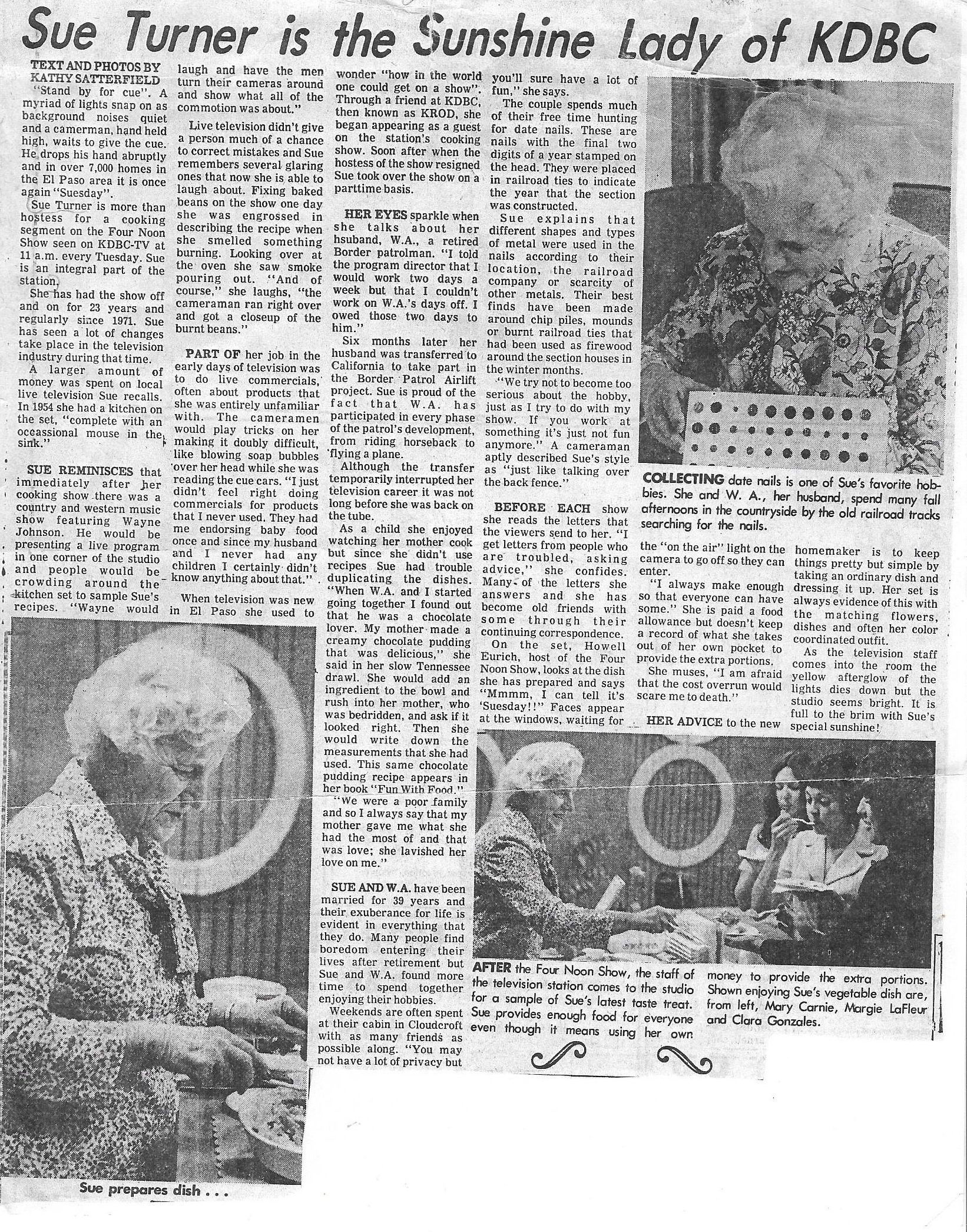 - Sue Turner hosted a local television cooking show and founded the El Paso Border Partol Museum. Photo Credit: El Paso Times