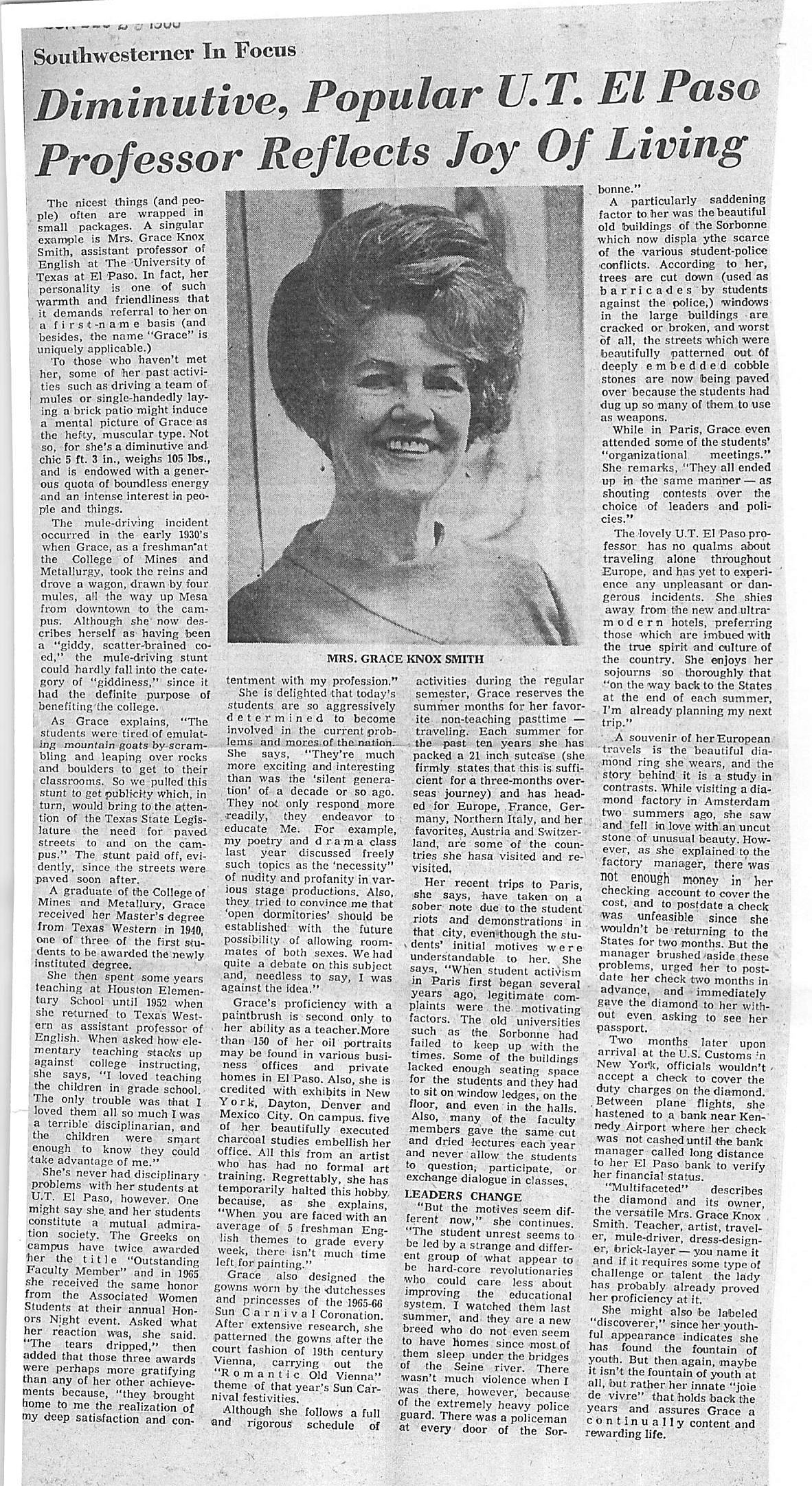 - Grace Smith designed the dresses for the sun carnival. She was also a well known artist. El Paso Times