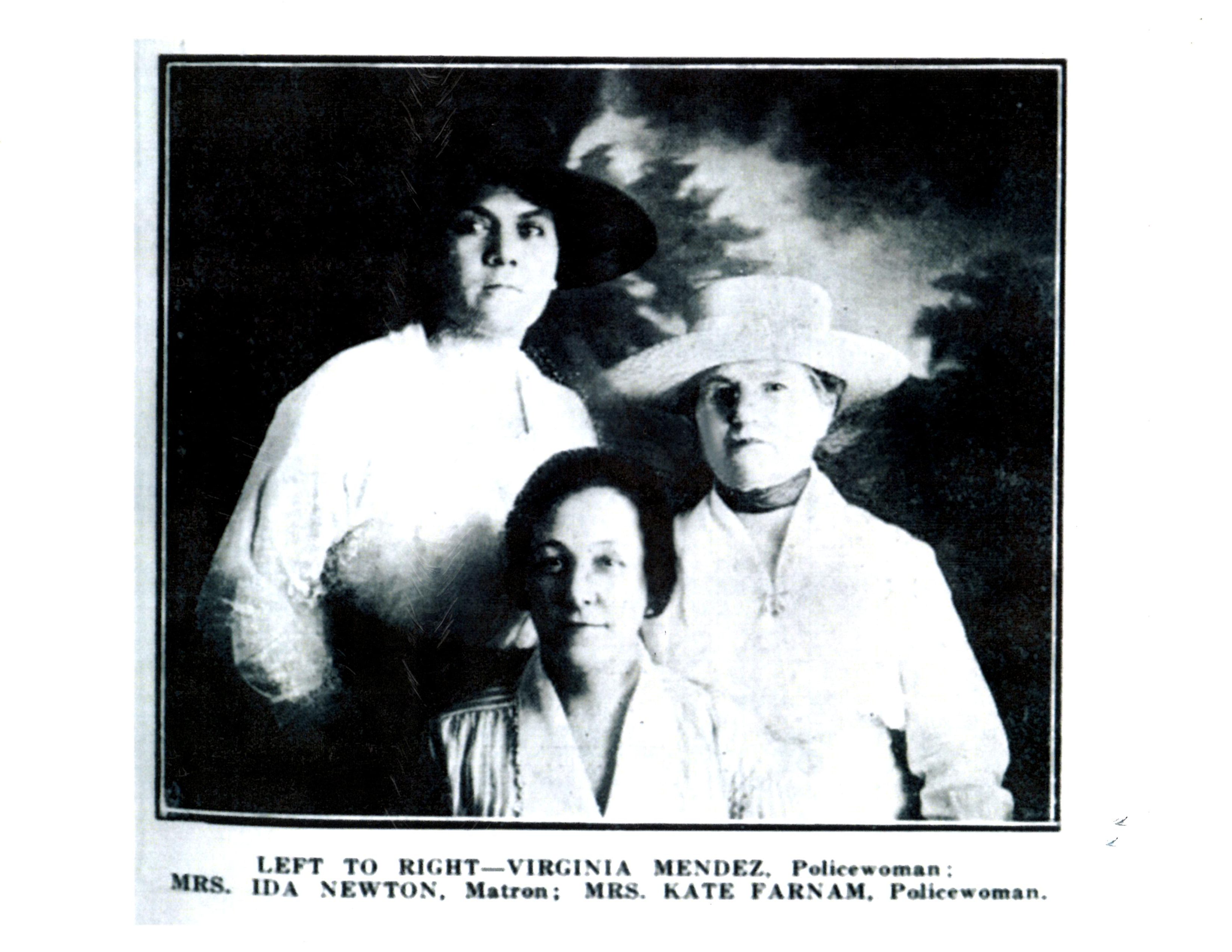 - In March of 1919 Kate Farnham was appointed policewoman. Farnham was later joined by Virginia Méndez, who was called the first “gun totting, badge wearing policewoman.” Mendez was said to be tough and as strong as any policeman. Both women lost their jobs because of political alignment and the position was again abolished in 1923.Mendez went on to serve as deputy county probation officer for many years. Farnham was moved to the position as matron at Washington Park, but the position was abolished and she ran the Upson Hotel, a boarding house on Upson Street. Photo Credit: El Paso Public Library.