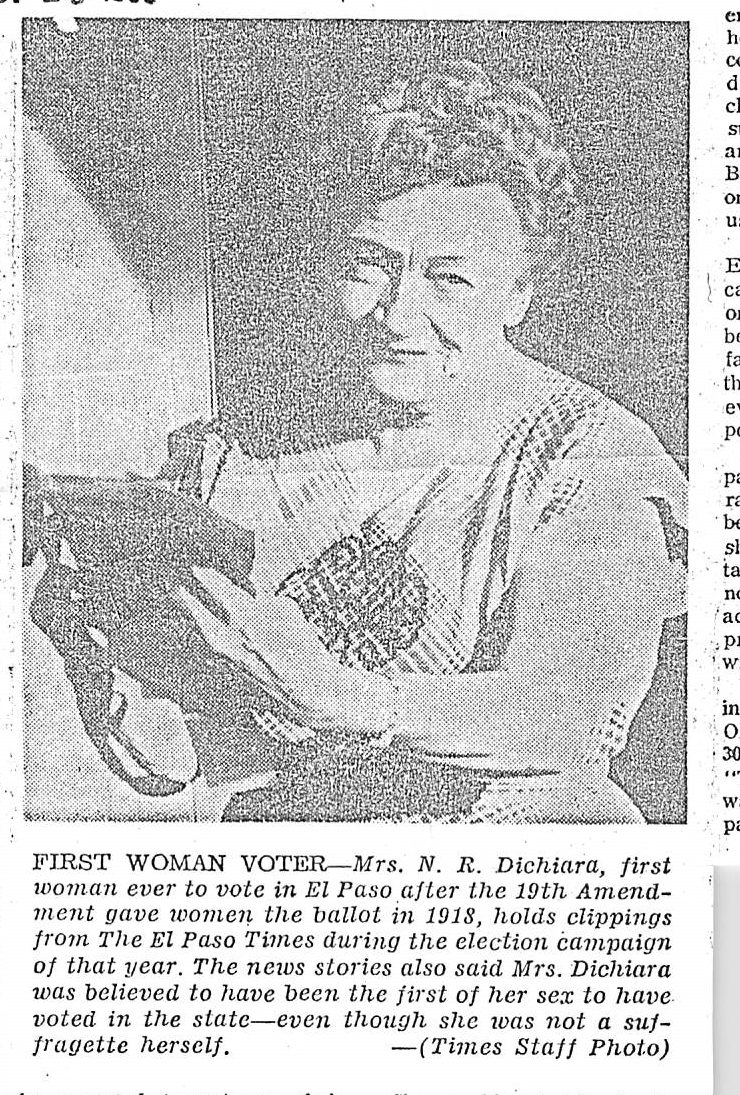- Ruby Dichiara, was the first woman to pay her poll tax to vote in El Paso in 1918 . Dichiara ran her own home building company. She built and designed some of her houses in Mission Hills. A subdivision was named after her. Photo Credit: El Paso Times.