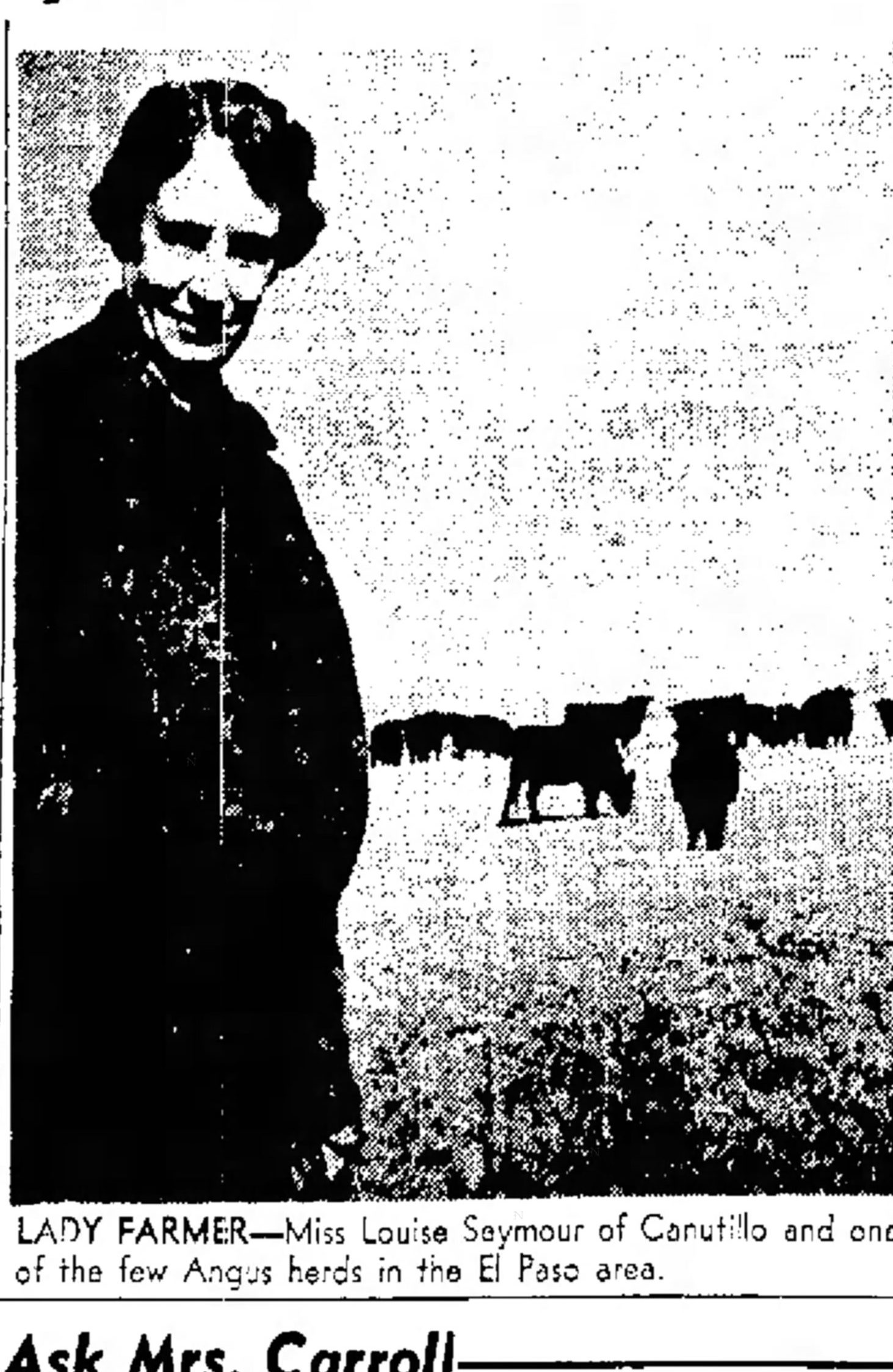 - Louise Seymour and her brother established an 160 acres farm in Canutillo. The duo started with the poultry business, raising and selling chickens, but that business venture eventually folded and left them broke. Seymour worked for the Bureau of Entomology and Plant Quarantine for the U.S. Agriculture Department to help support the farm and to help out her brother. Seymour and her brother then went in the cotton business and started raising cotton on their farm. She ended up working in the office of a cotton gin her brother had bought into. Credit: El Paso Times