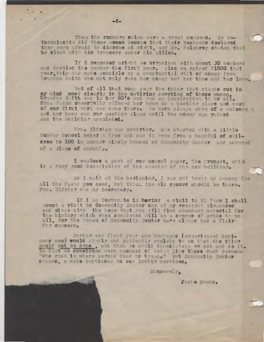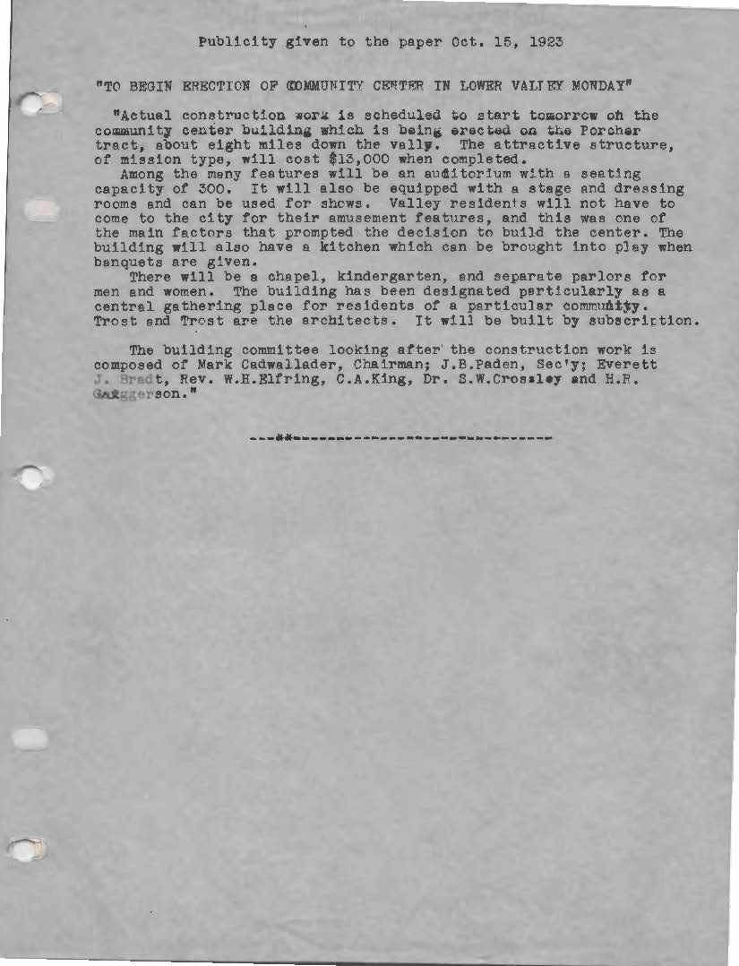 - publicity given to the newspapers about the building of the Ysleta Community Center.