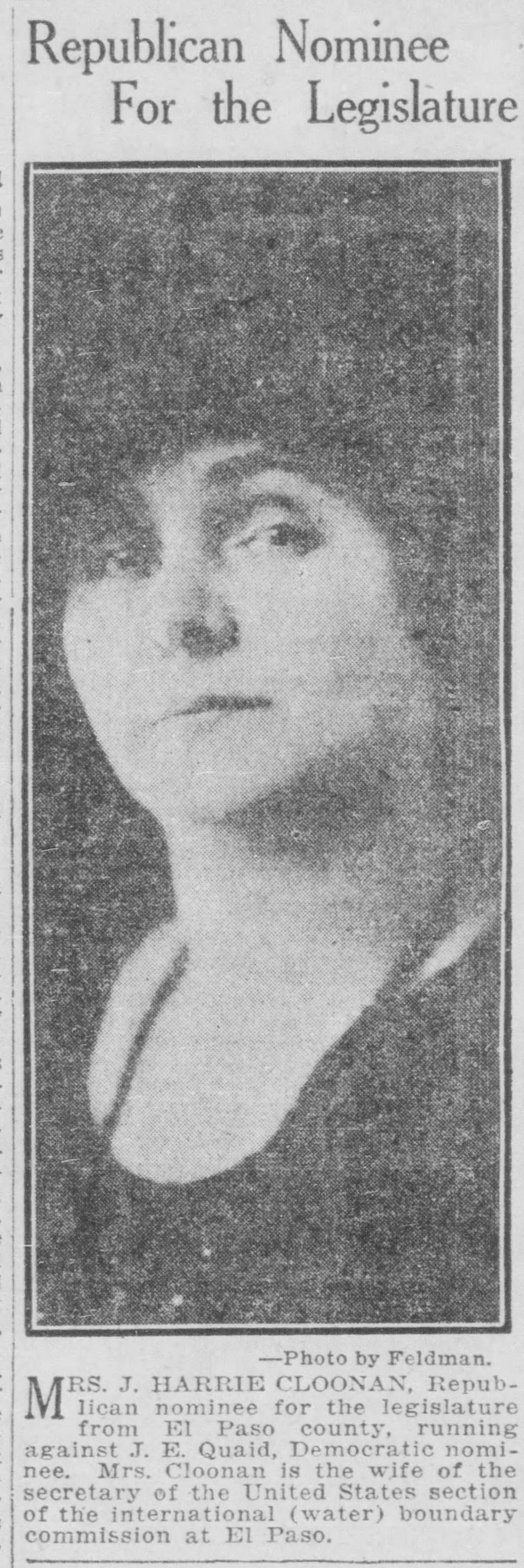 - Ressie Cloonan also ran for the state legislature on the Republican ticket with Dr. Merchant. Oct 21, 1922 El Paso Herald