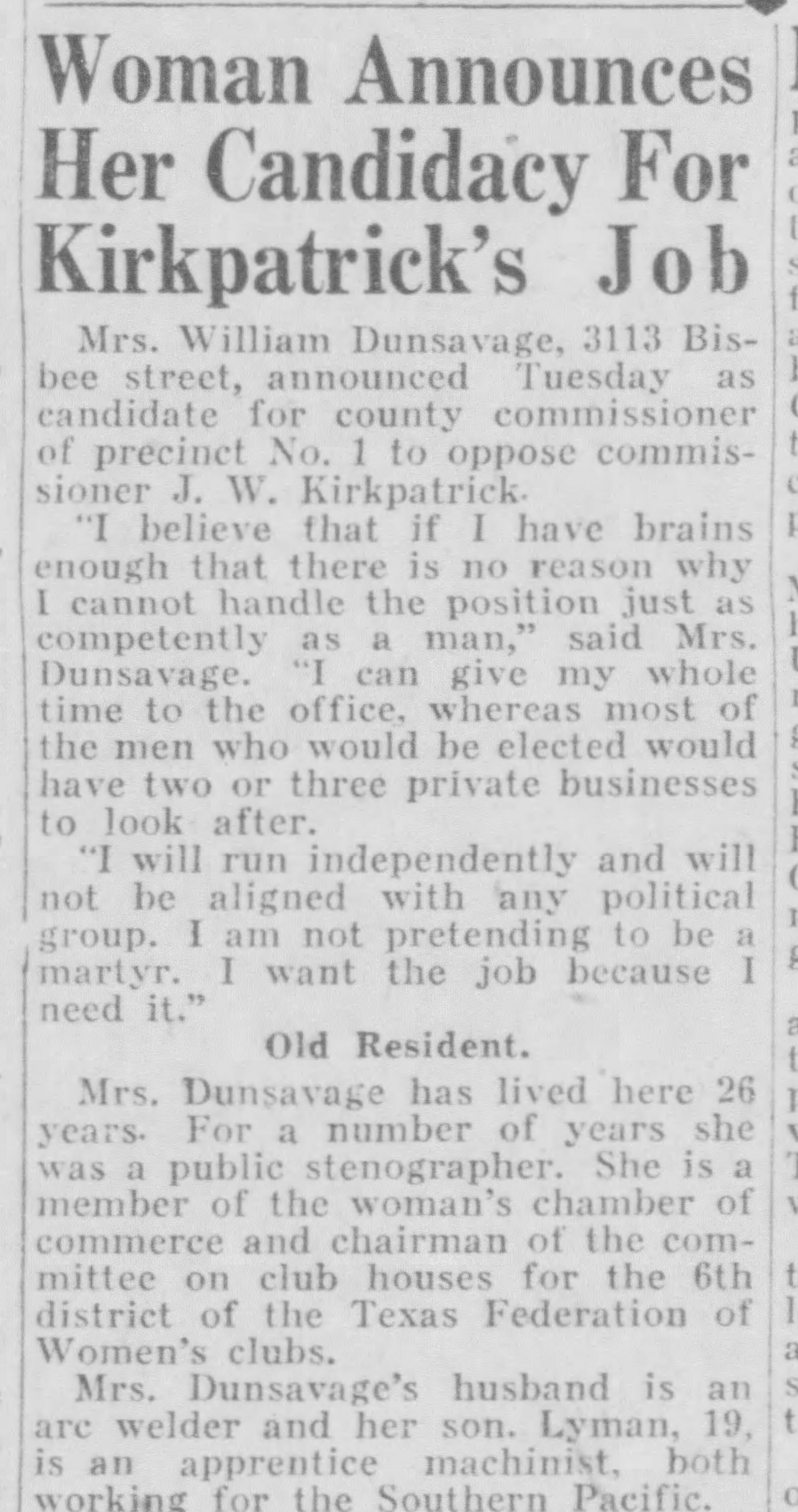 - Hortense Dunsavage was the first woman to run for El Paso County Commissioner in 1926. A Position that was thought of a traditionally male position. She was defeated and a woman would not be elected to the position until Mary Haynes in 1982.