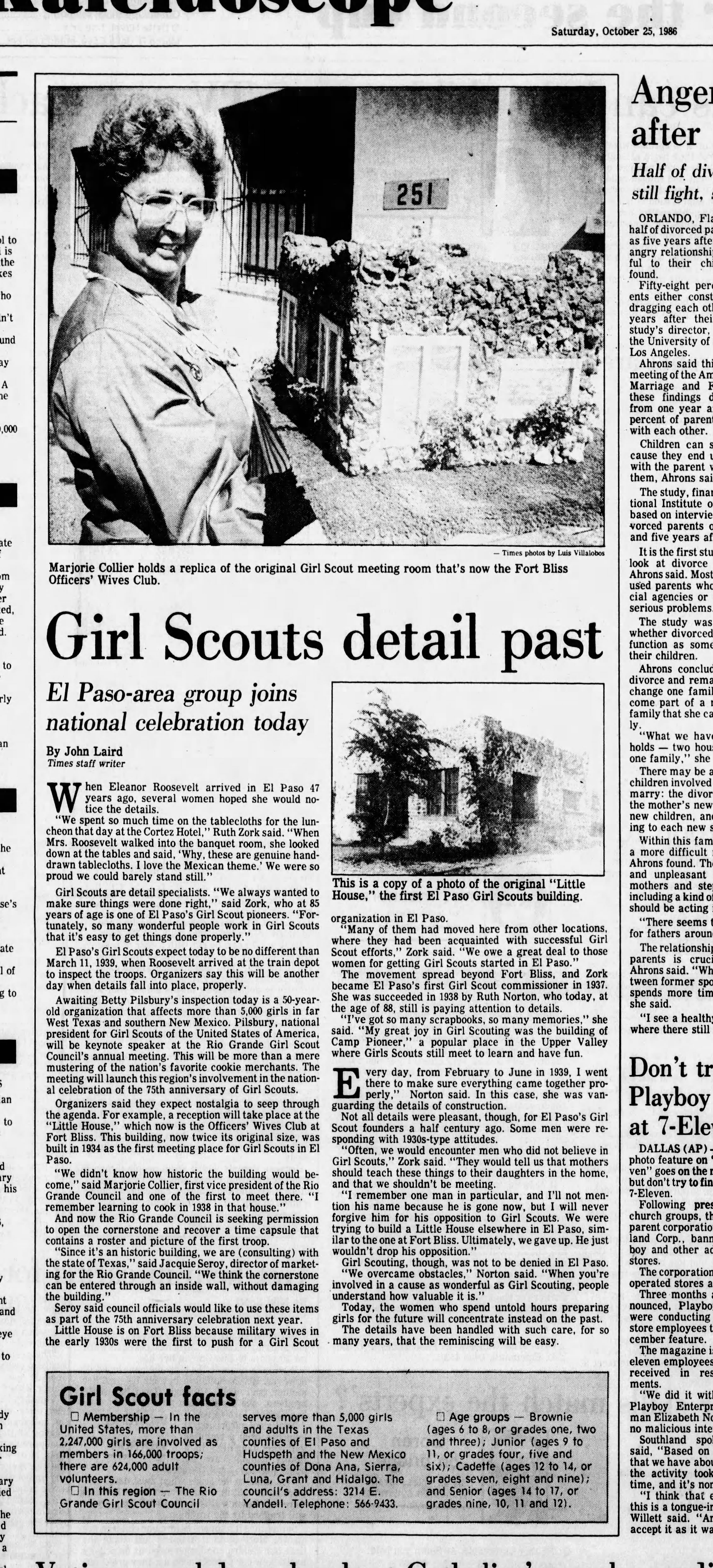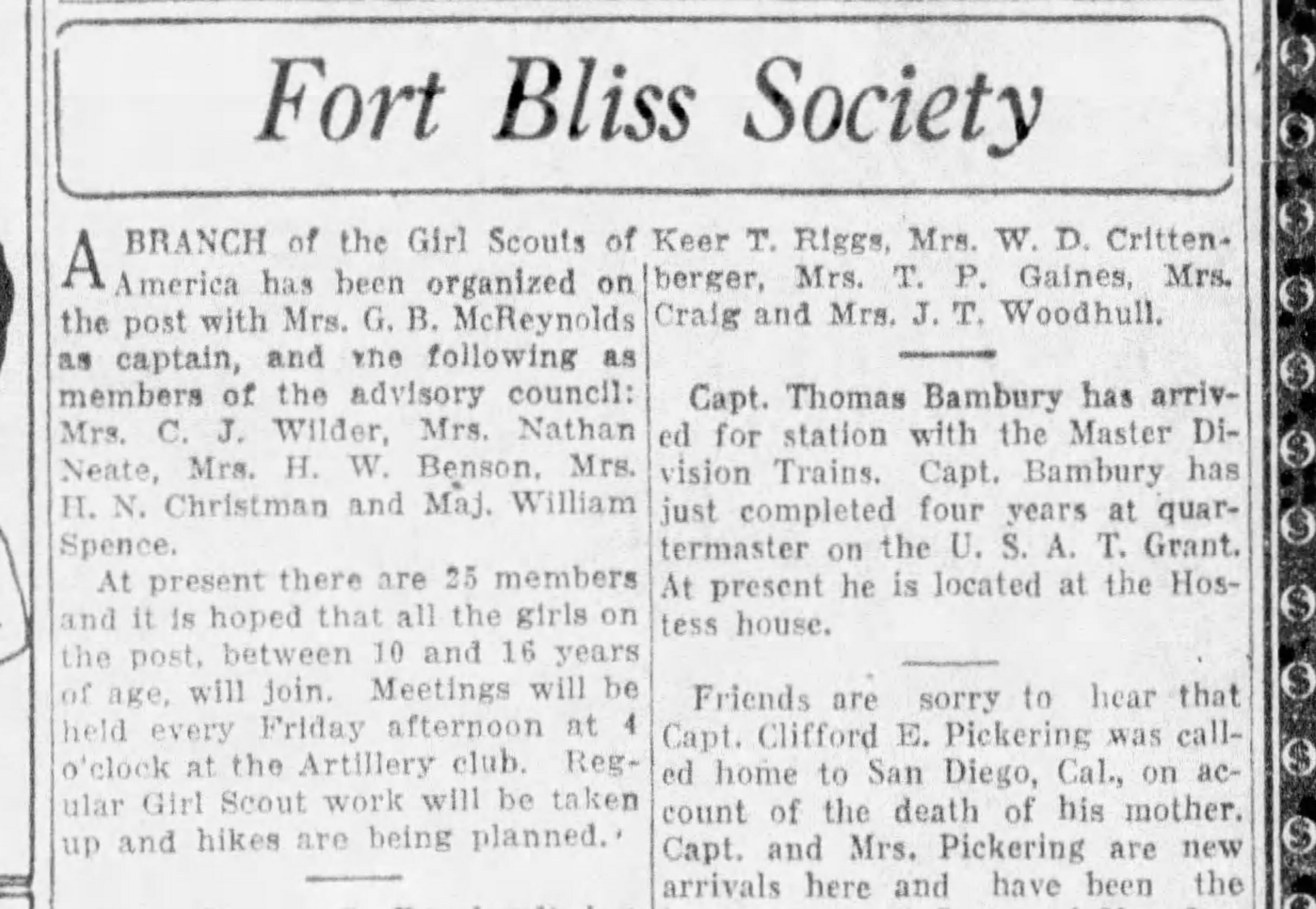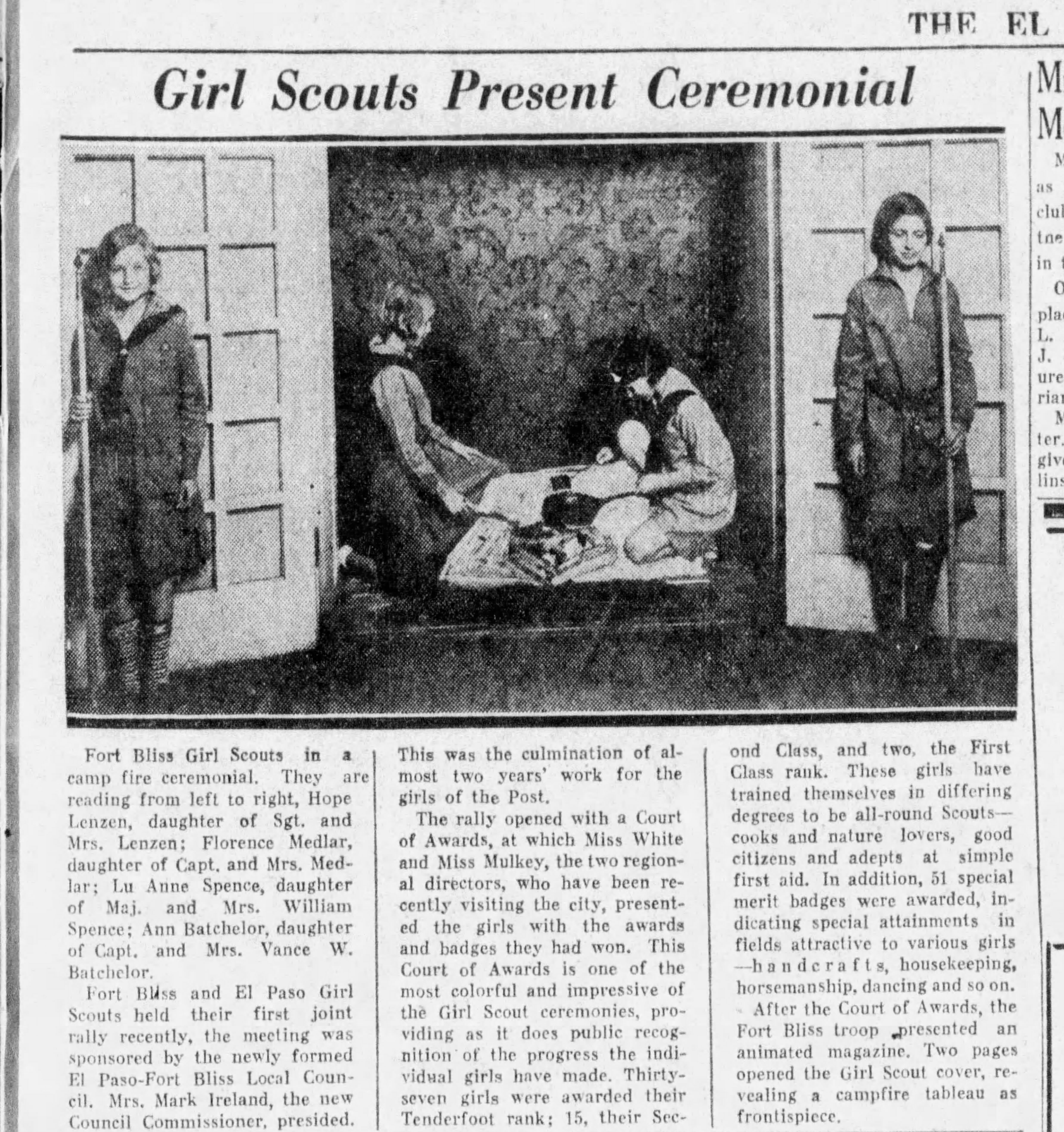 - The first girl scout troop in El Paso was founded at Fort Bliss in 1930. Nov 2,1930 El Paso Times.