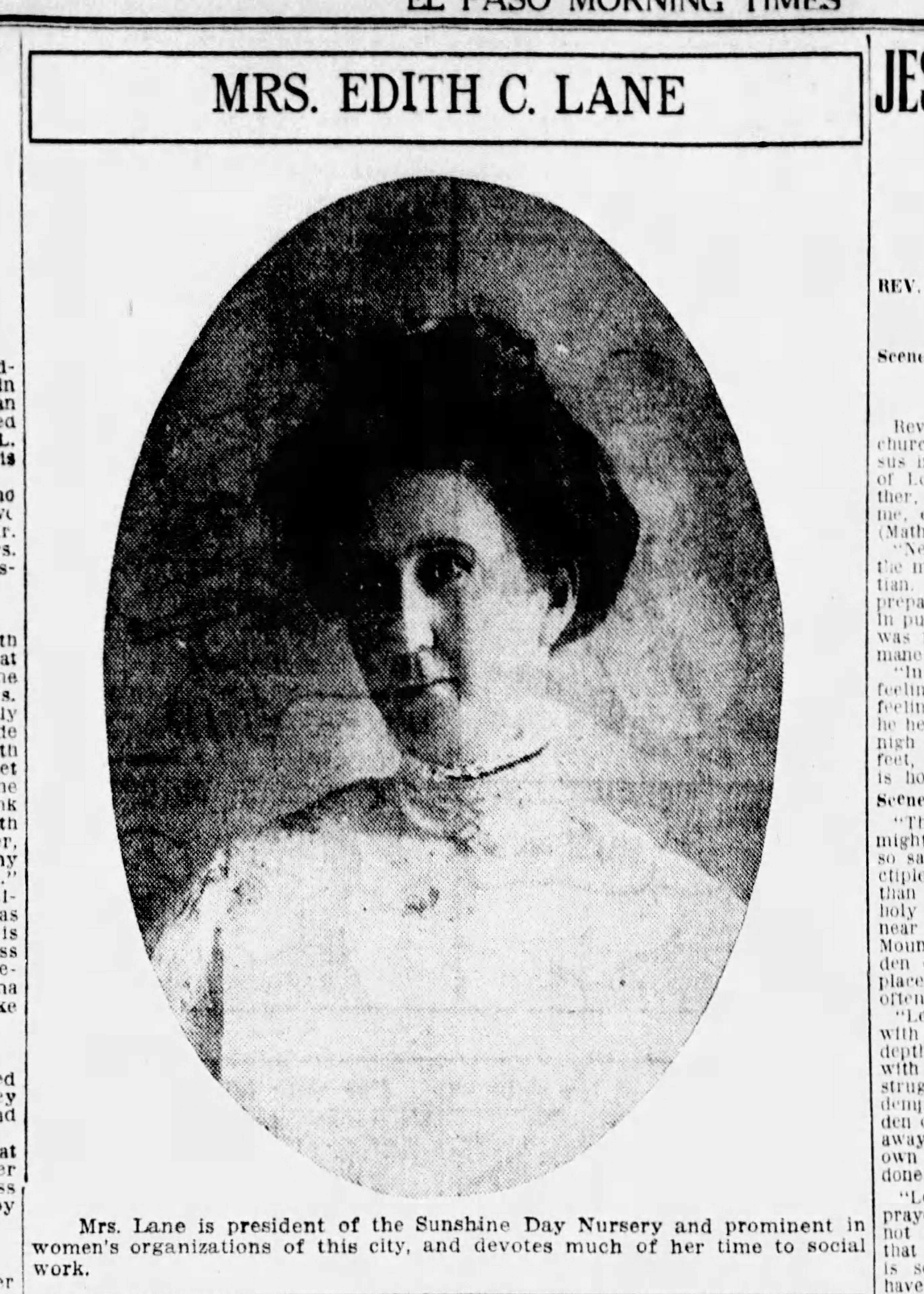 - Association president, Mrs. Elise Slater, led the “Save the Babies” Campaign, backed by the El Paso Herald, that raised money for a milk depot.