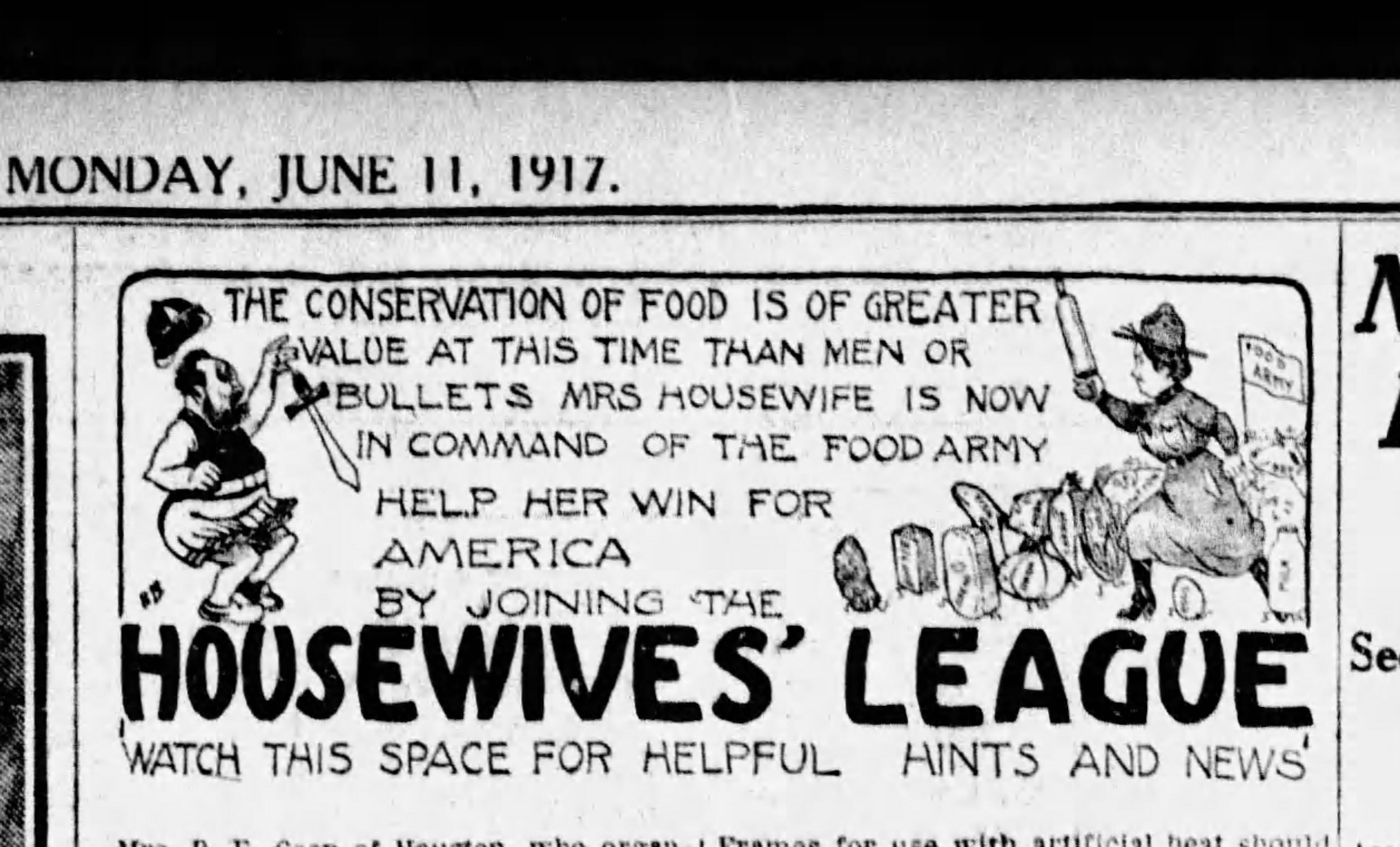 - the Housewives league was organized to address wartime food issues and other issues in 1917.