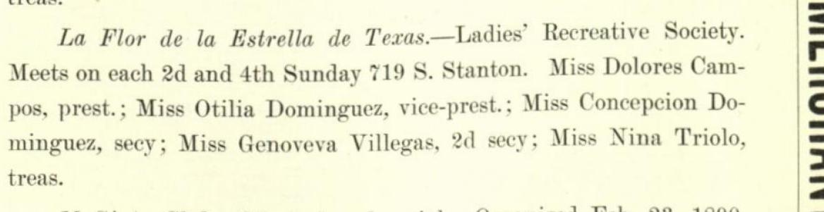 - In 1901, The La Flora Estrella De La Texas was an early social group for Mexican American women in El Paso. Courtesy of the 1901 El Paso City Directory.