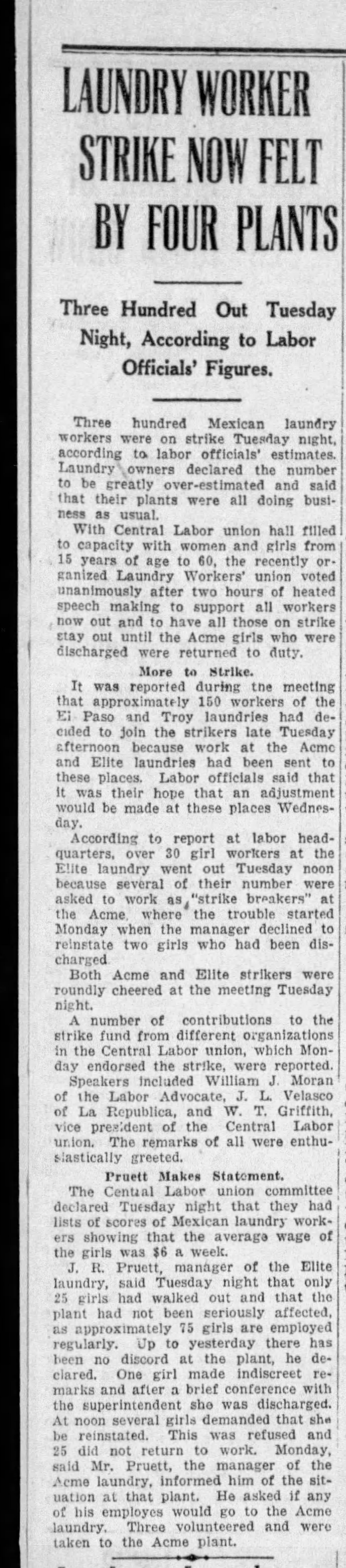 - El Paso women were also active in Labor Unions for example In 1919, several Mexican American women employees of multiple El Paso Laundries led a strike for better wages and conditions.