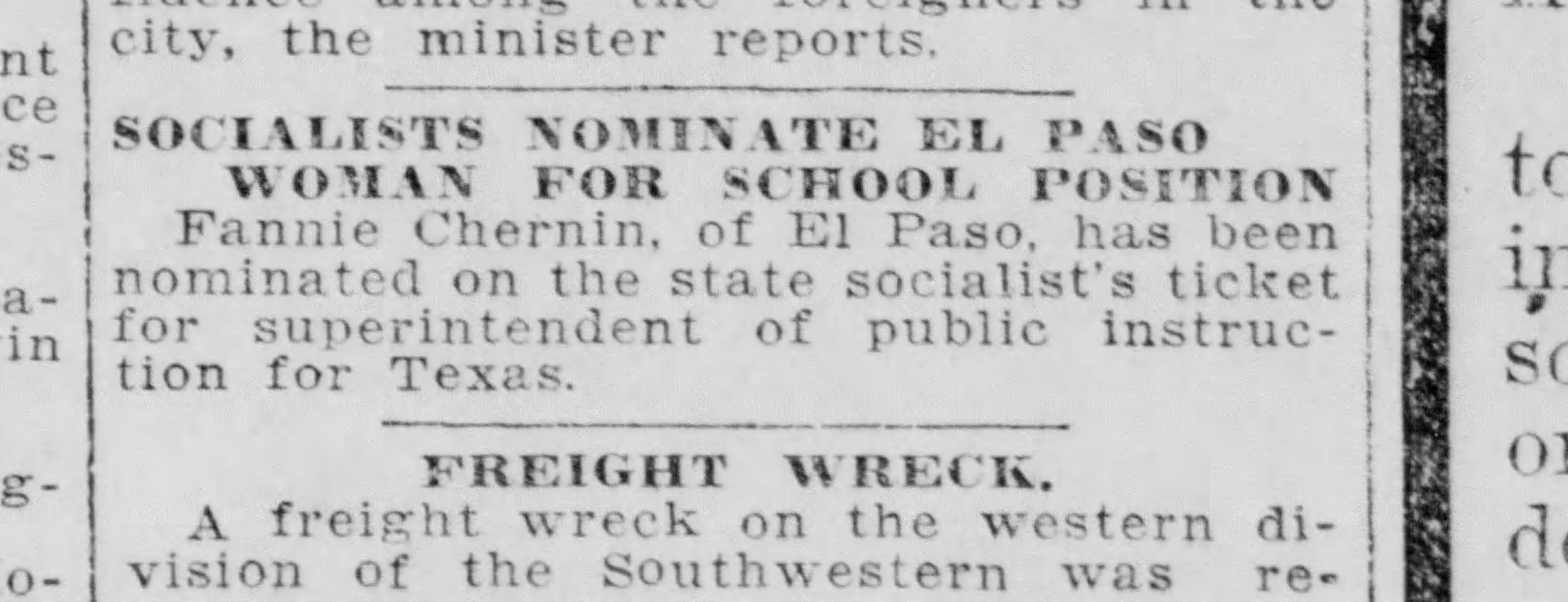 - Women in Texas could hold and run for most elected offices in the state before women could vote going back to 1902. El Paso Women starting running for elected offices in 1912. Fannie Chernin was one of the first women to be nominated for statewide office in Texas. She was nominated by the Socialist Labor Party for State Superintendent of Schools in 1912. She received five votes.