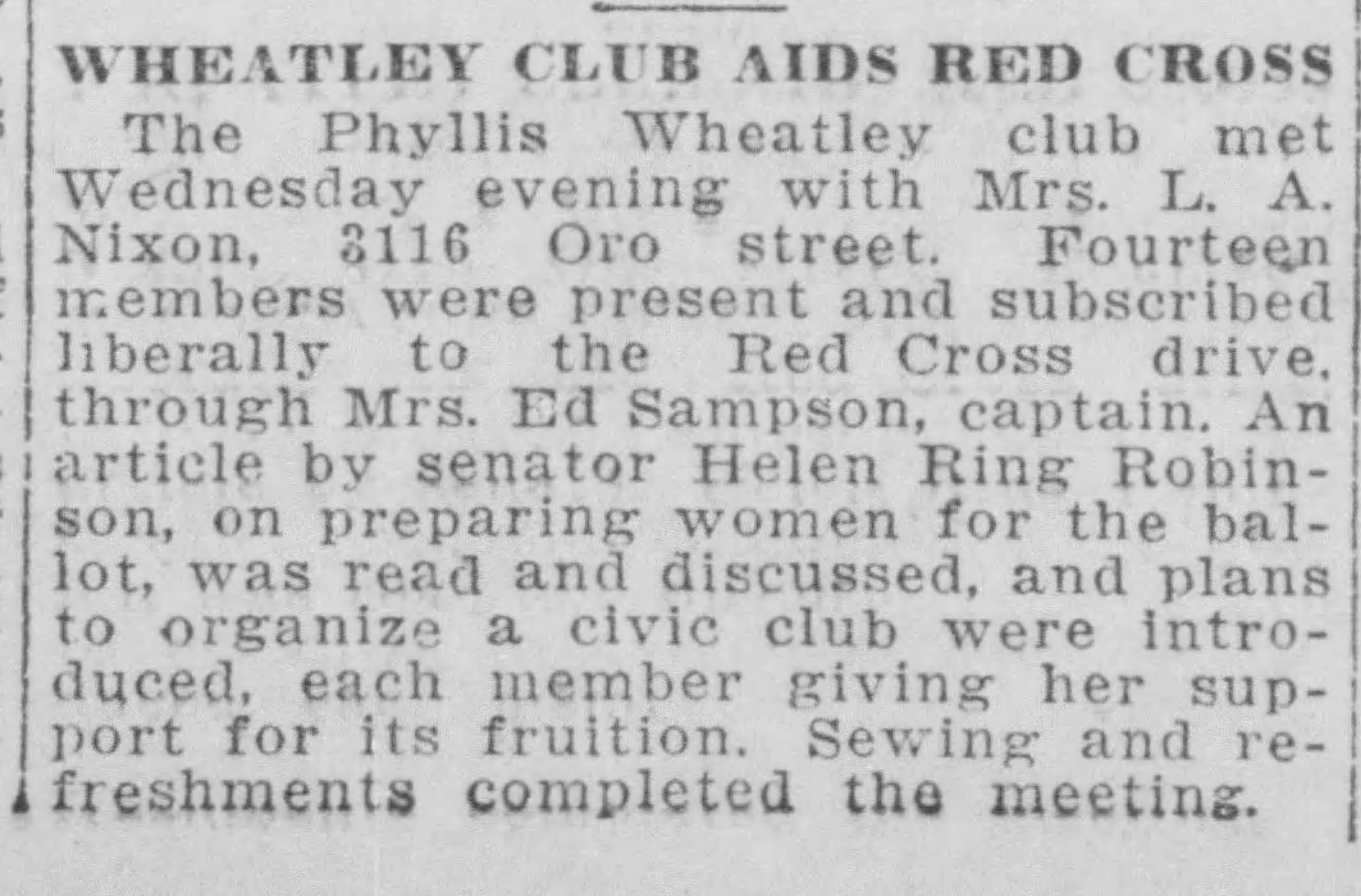 - The Phillis Wheatley Society was named after the first published African American woman poet. The local chapter was organized in 1914.