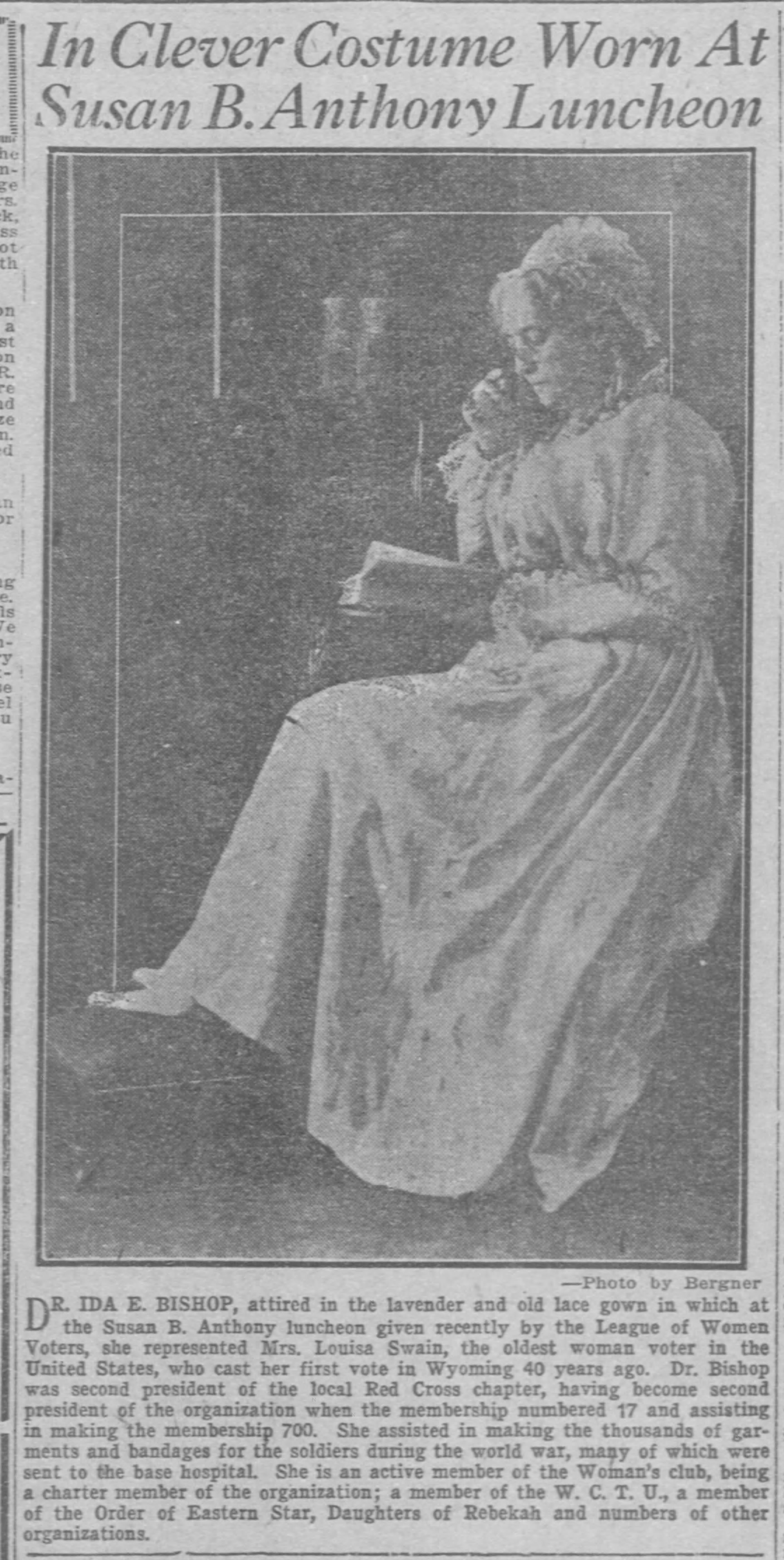 - Dr. Ida Bishop, pioneer El Paso Woman doctor and suffragist. El Paso Herald March 2, 1920.