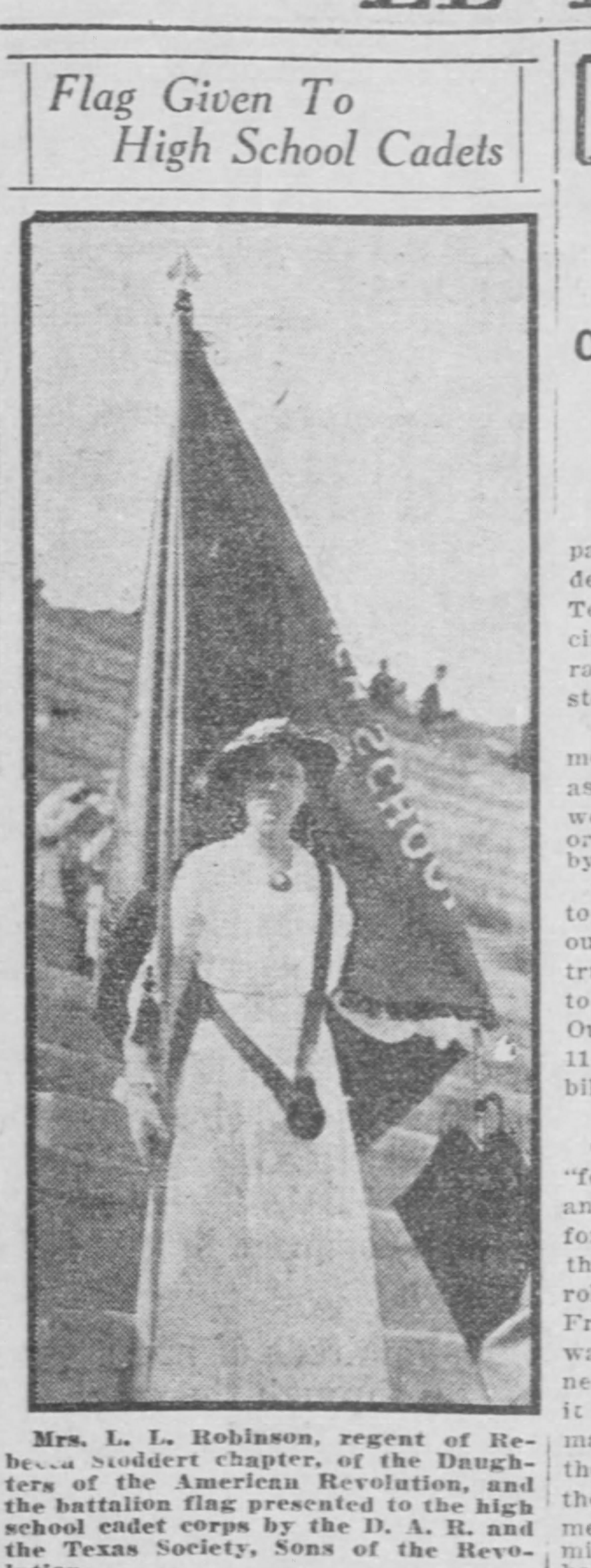 - Mrs L.L. Robinson was active in the Rebecca Stoddard Chapter of the DAR was also a suffragist.