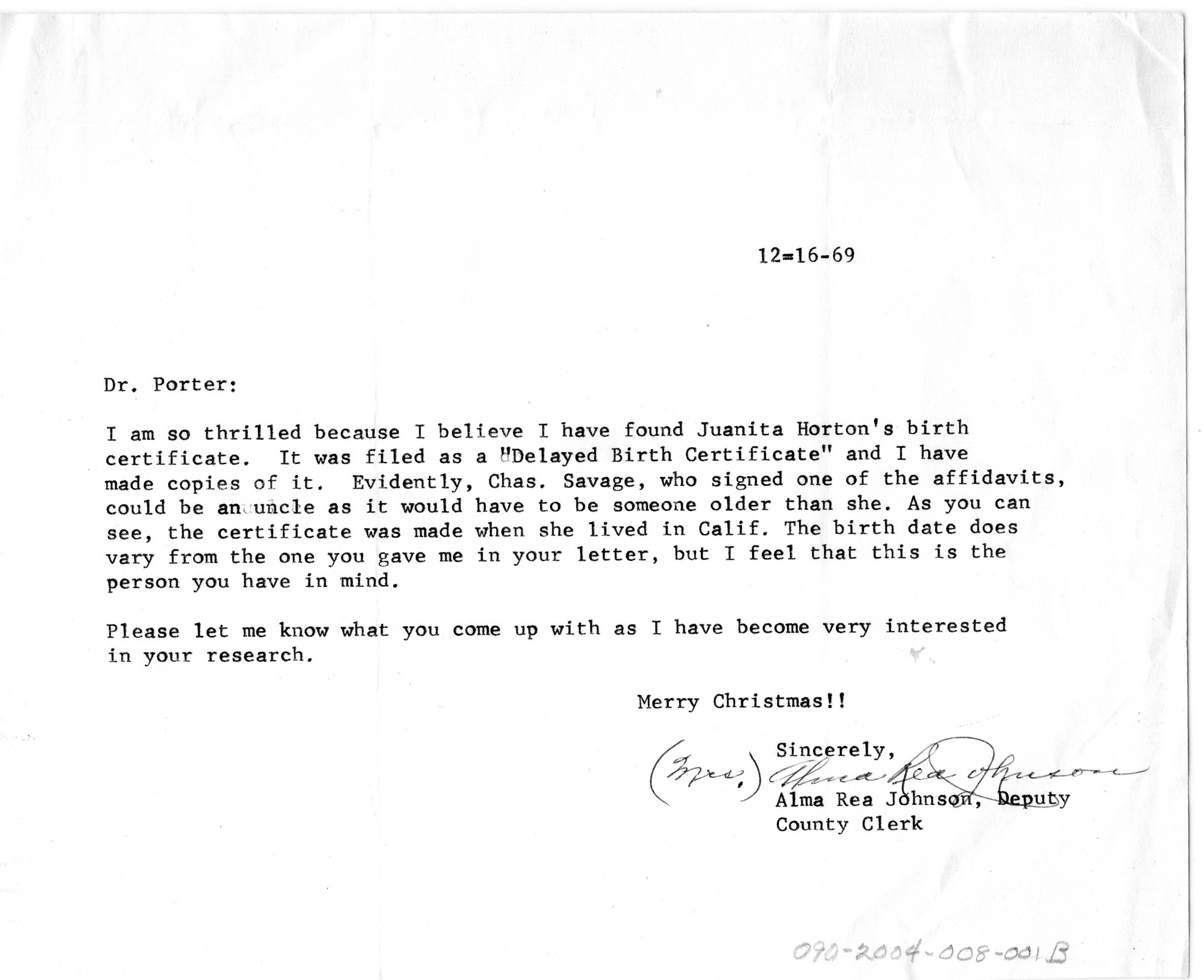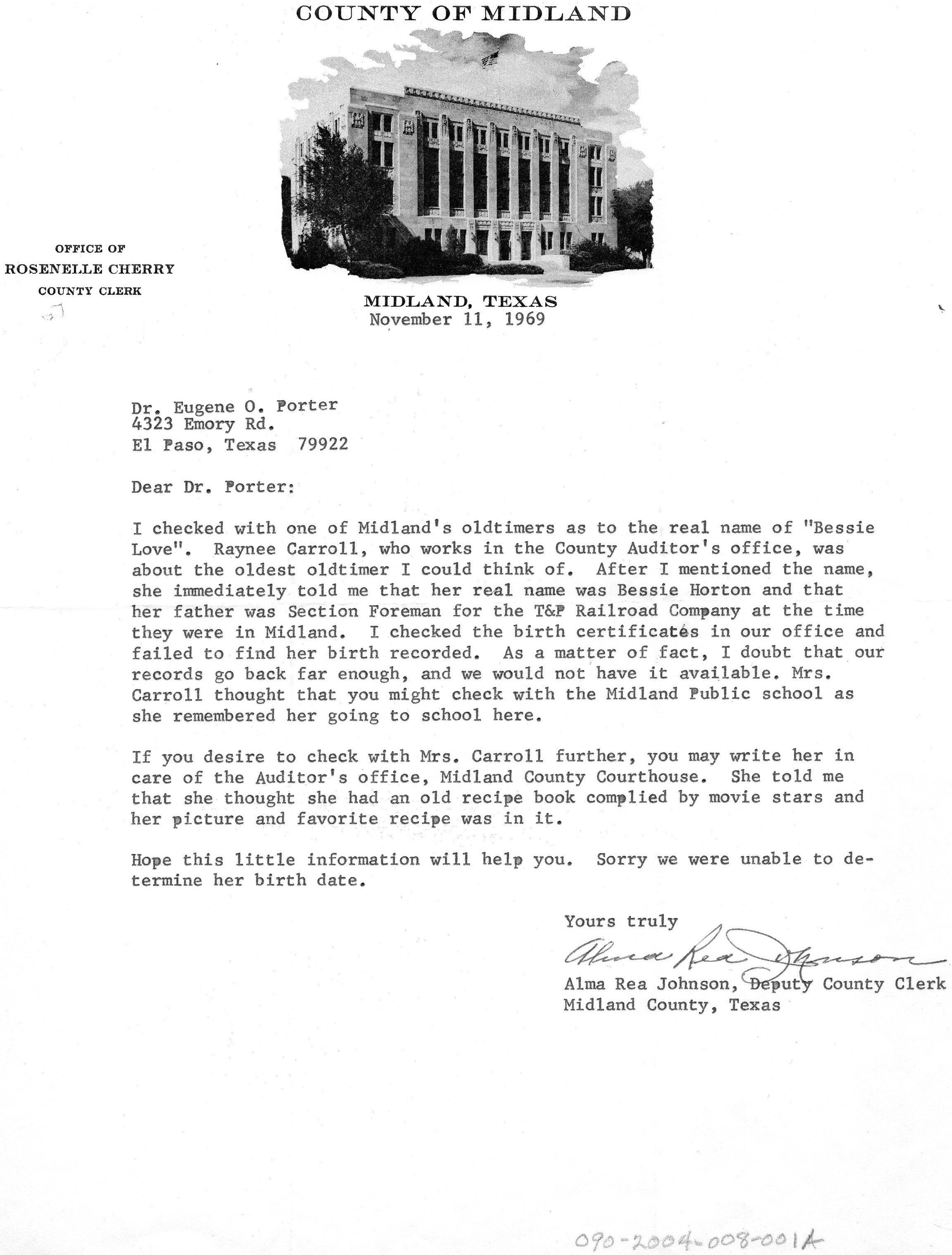 The Following documents and correspondence are from Mr. Porter’s research quest of Bessie Love.