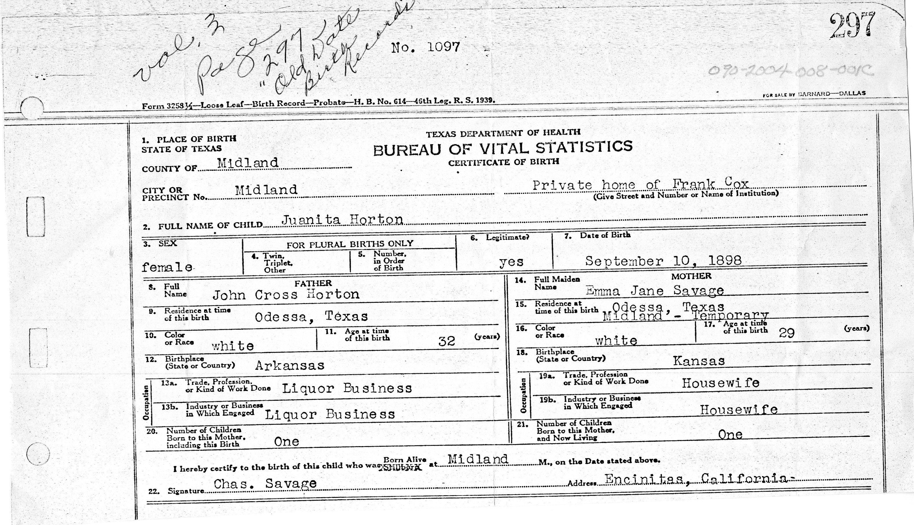 Bessie Love was born  Juanita Horton in Midland, Texas on September 10. She lived in El Paso when was younger. She told the El Paso Times in 1924 she attended Sunset School,1905-1906. She lived on 410 N. Oregon street. Love came back to El Paso to shoot the film “Sundown” in 1924. She told the El Paso Times “It is just like coming home to be here now” but many years later when she was interviewed by El Paso County Historical Society’s Password Editor, Eugene Porter she did not have a lot to say about El Paso.