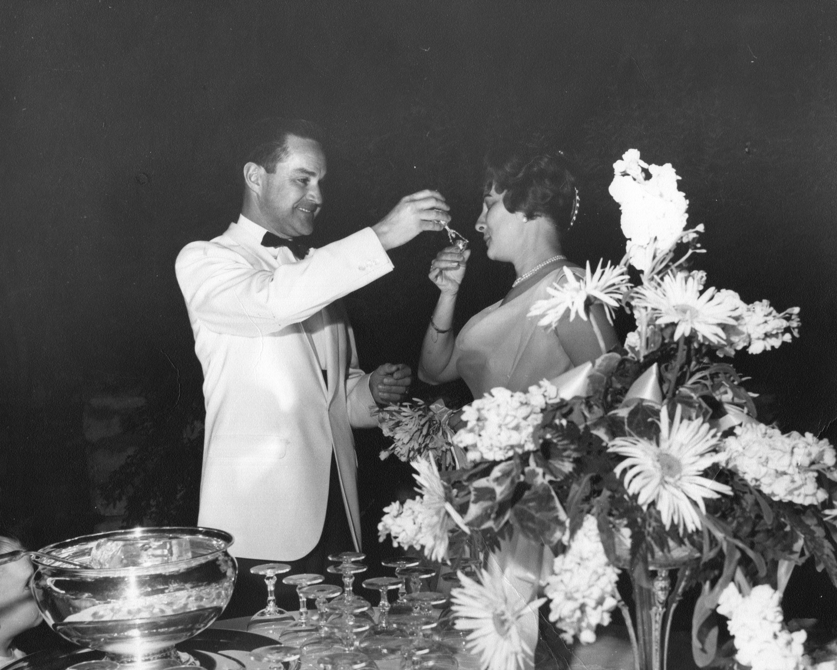 - Josiphina and Burges Perrenot cutting their wedding cake. June 1962. Wedding in back yard of Burges House.