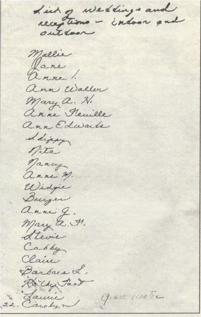 - A list of the “Brides of Burges House,” written by Jane Burges Perrenot. 1923-1977