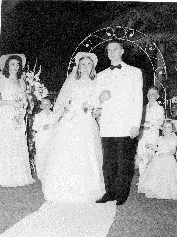- Helen Halvorson and groom Francis”Skip” Broaddus Aug. 10, 1949 in the Perrenot-Burges yard