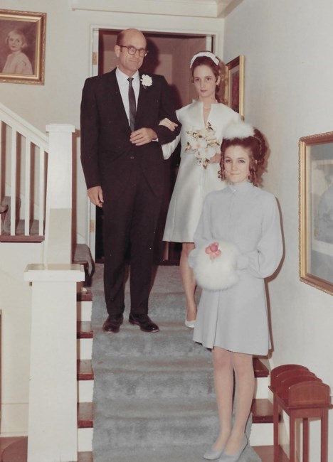 - William Hooten escorting his daughter Barbara Hooten Bentley to her wedding with Joseph Luckett at the Burges House January 23, 1969.