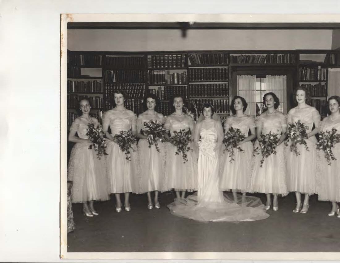 - Ann Perrenot and her bridesmaids at her wedding. Photo taken in the living room of the Burges House, Aug. 25, 1951.